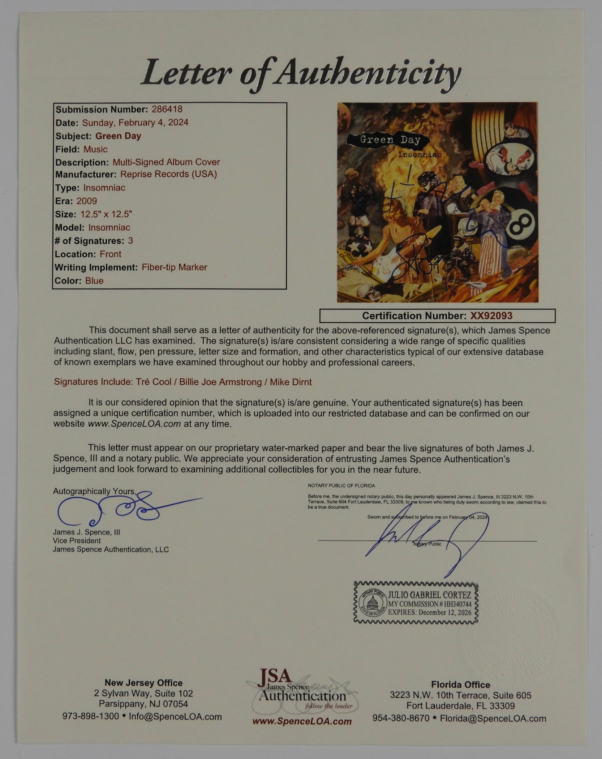 Authenticated by JSA #XX92093
